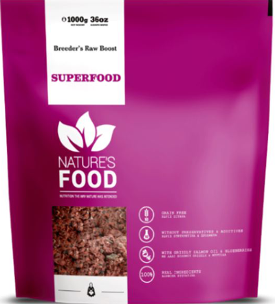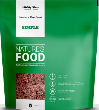 Συστατικά: Κιµάς από κρέας, κόκκαλα και συκωτάκια κοτόπουλου (70%), λαχανικά και φρούτα (25%) (µαρούλι, µπρόκολο, κουνουπίδι, καρότο, αγγούρι, πιπεριά, µαιντανός, τζίντζερ, σπανάκι, κολοκυθάκια, αντίδια, µήλο, ροδάκινο),λάδι σολοµού, ολόκληρο αυγό, πρόβειο γιαούρτι, κεφίρ, µηλόξυδο, εκχύλισµα από τσάι του βουνού, ινδική καρύδα, cranberries, blueberries, raspberries.