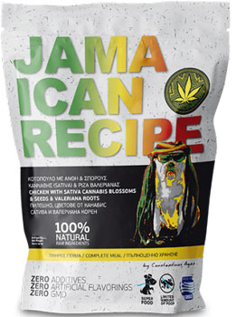 Συστατικά: Κρέας & κόκαλα κοτόπουλου, Λαχανικά εποχής, Οργανική κάνναβη, Παρθένο ελαιόλαδο, Ρ'ιζα βαλεριάνας, Συκώτια κοτόπουλου, Φρέσκα φρούτα